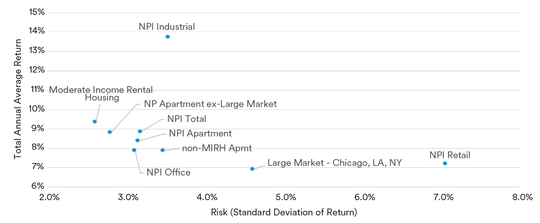 In recent years, investors have also begun considering how the income profiles of residents could shape investment strategies. Looking at strategic opportunities in the sector, we believe Moderate-Income Rental Housing offers attractive long-term risk-adjusted returns while supporting the need for more affordable housing in the U.S.
