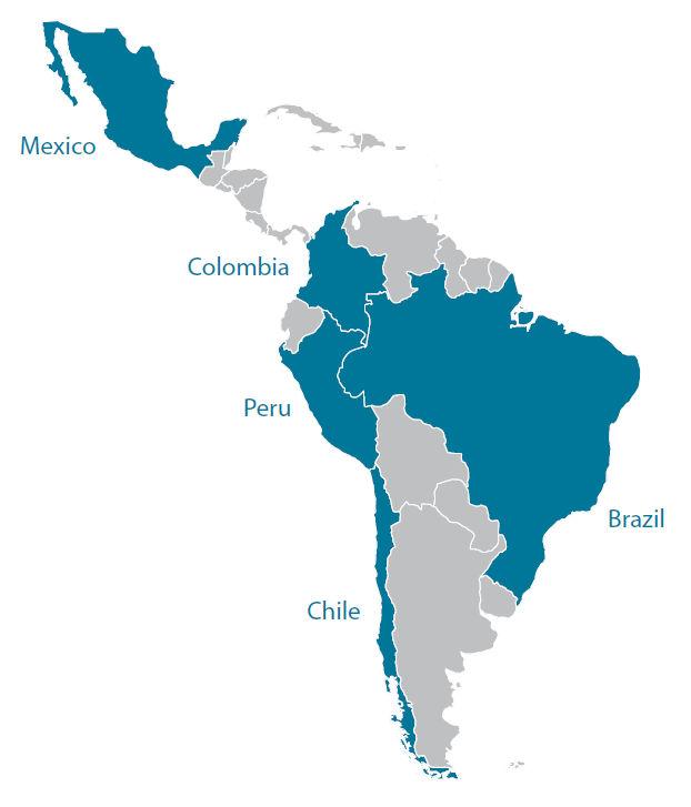 Brazil, Mexico, Colombia, Peru and Chile form the core of private equity in Latin America.
