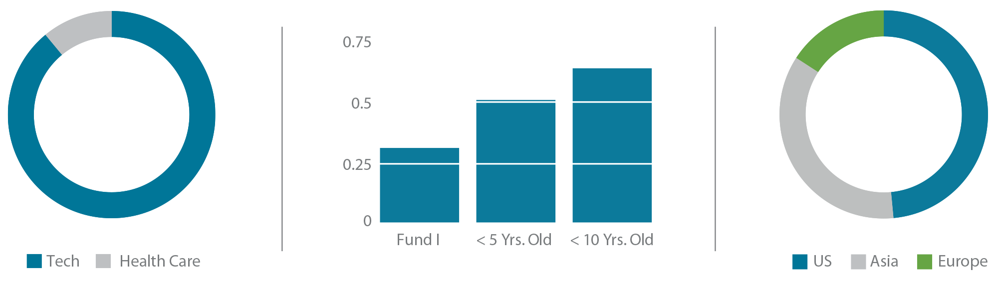We analyzed the age, sector and geographic characteristics of the Top 5 performing VC funds of each vintage from 2007 to 2015. First-time funds accounted for nearly a third of the top performing funds (Figure 9).